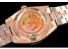 | BAND: | 18K Rose Gold Plated 904 Stainless Steel Extra Weighted Brushed/ Polished Stainless Steel New Style 2 piece end link President Bracelet with Single Fold Deployant Clasp |